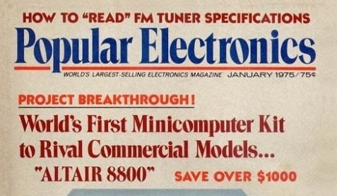 This is an advertisement for the Altair 8800 personal computer in the Popular Electronics Magazine. The Altair 8800 was the first commercially successful personal computer kit and was sold beginning in January 1975, when it was featured on the cover of the Popular Electronics magazine. This magazine had been the life and soul of the personal electronics culture in America, and being nominated to the cover marketed the Altair 8800 massively. It was sold as a DIY kit for around $400, and it was a plain metal box with switches and blinking lights. It was nowhere close to the PCs that consumers have today, but it was a massive success with the “hackers” of the 1970s.